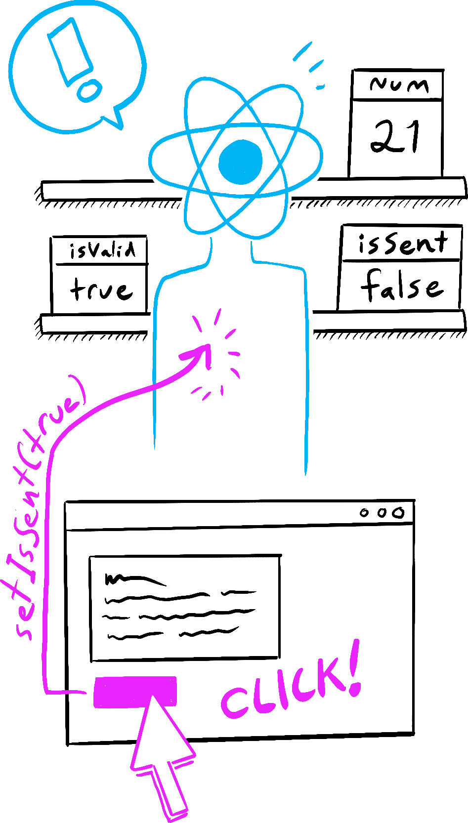 2. setIsSent(true) postavi isSent na true i postavi novi render u red čekanja.